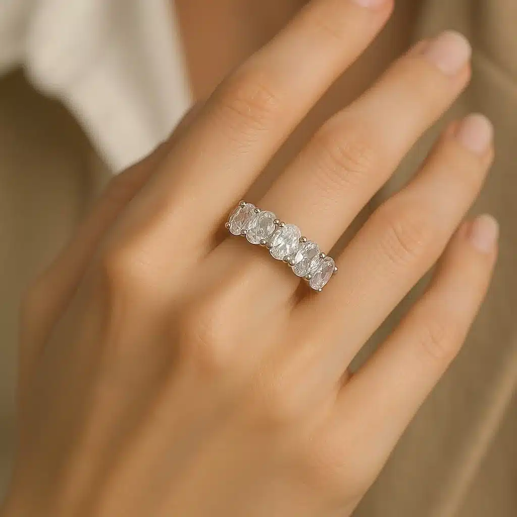 טבעת מכסף 925 משובצת אבנים אובליות – עיצוב פשוט עם נגיעה עדינה של ברק