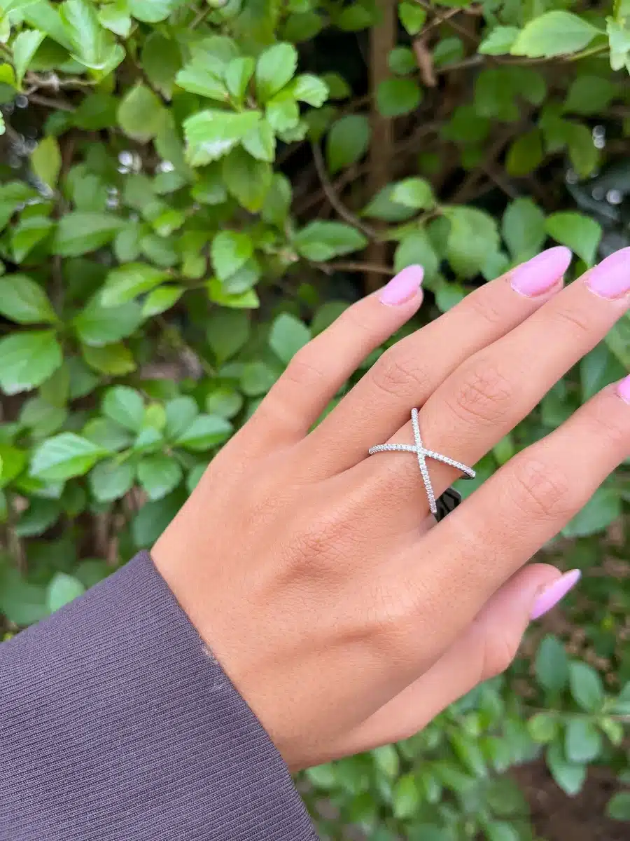 טבעת כסף טהור בעיצוב נקי ומדויק, עם צורת איקס המוסיפה טאץ' של אלגנטיות לכל הופעה. מתאימה לשימוש יומיומי או כהשלמה מושלמת ללוק ערב.