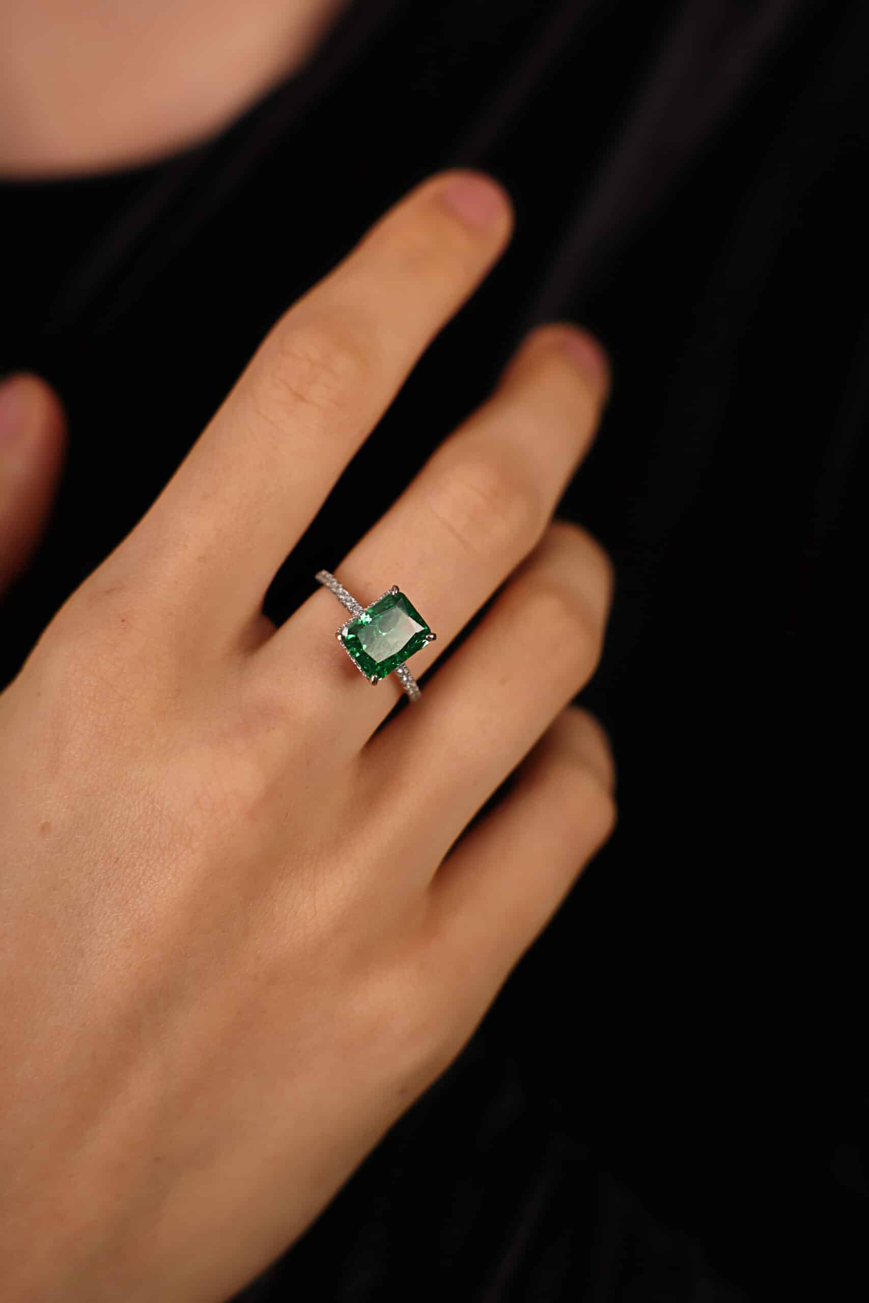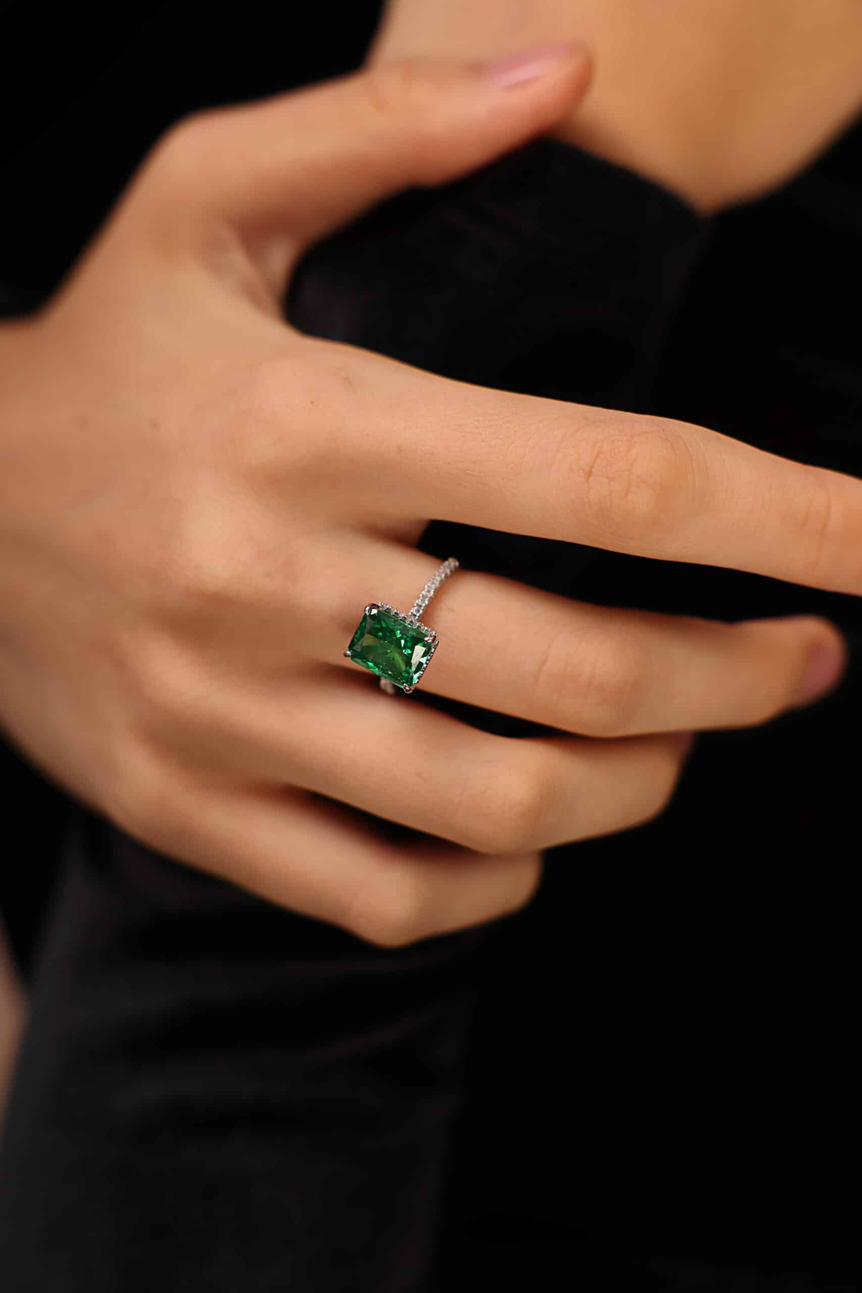 טבעת SANSY אבן ירוקה נוכחות עדינה עם טוויסט צבעוני. עשויה מכסף 925, משובצת אבן ירוקה מרשימה ושורת זרקונים מנצנצים. לבחירת מידה 6/7/8/9