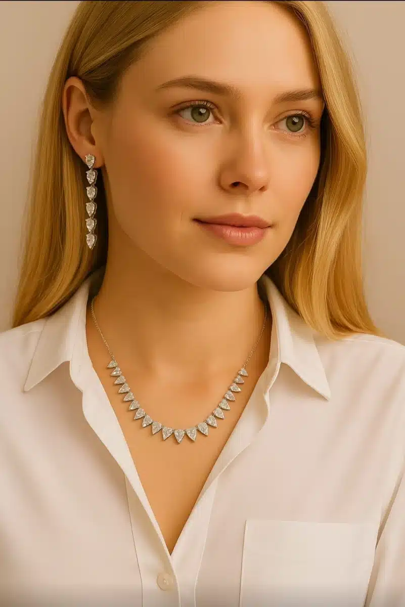 סט טיפות כסף טהור קלאסי, נקי ונוגע – סט במראה טיפה שמוסיף נוכחות בשקט. עשוי מכסף 925, לאוהבות סטייל על זמני.