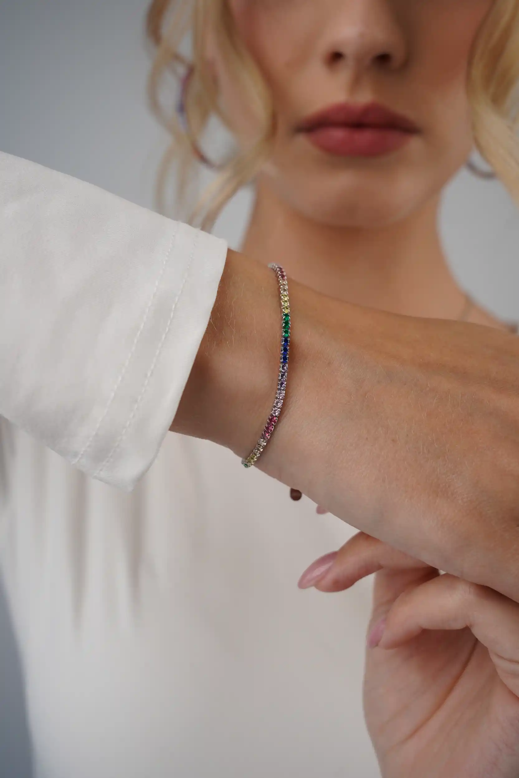 צמיד עדין עם שיבוץ זרקונים צבעוניים על כסף 925 — נצנוץ חגיגי