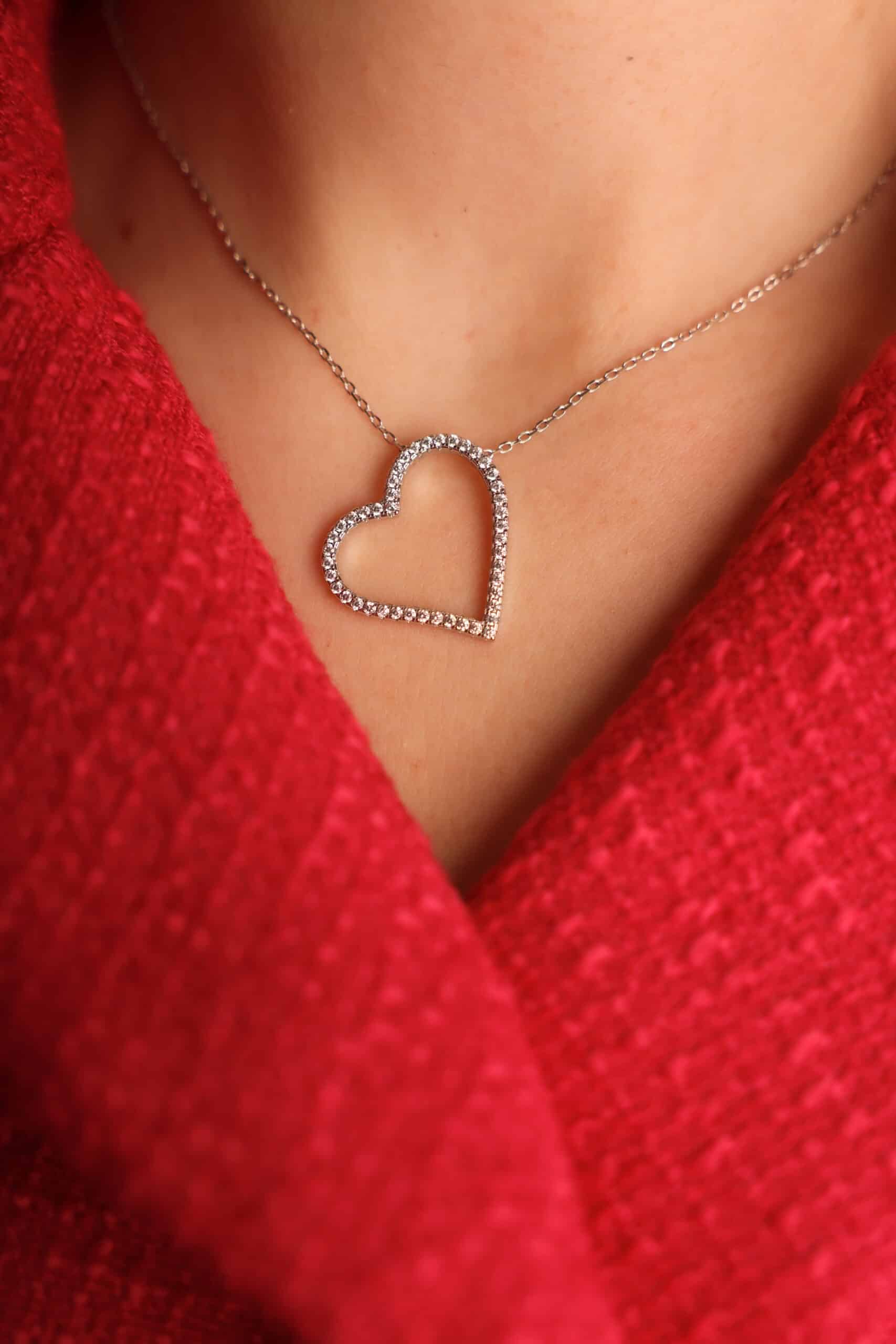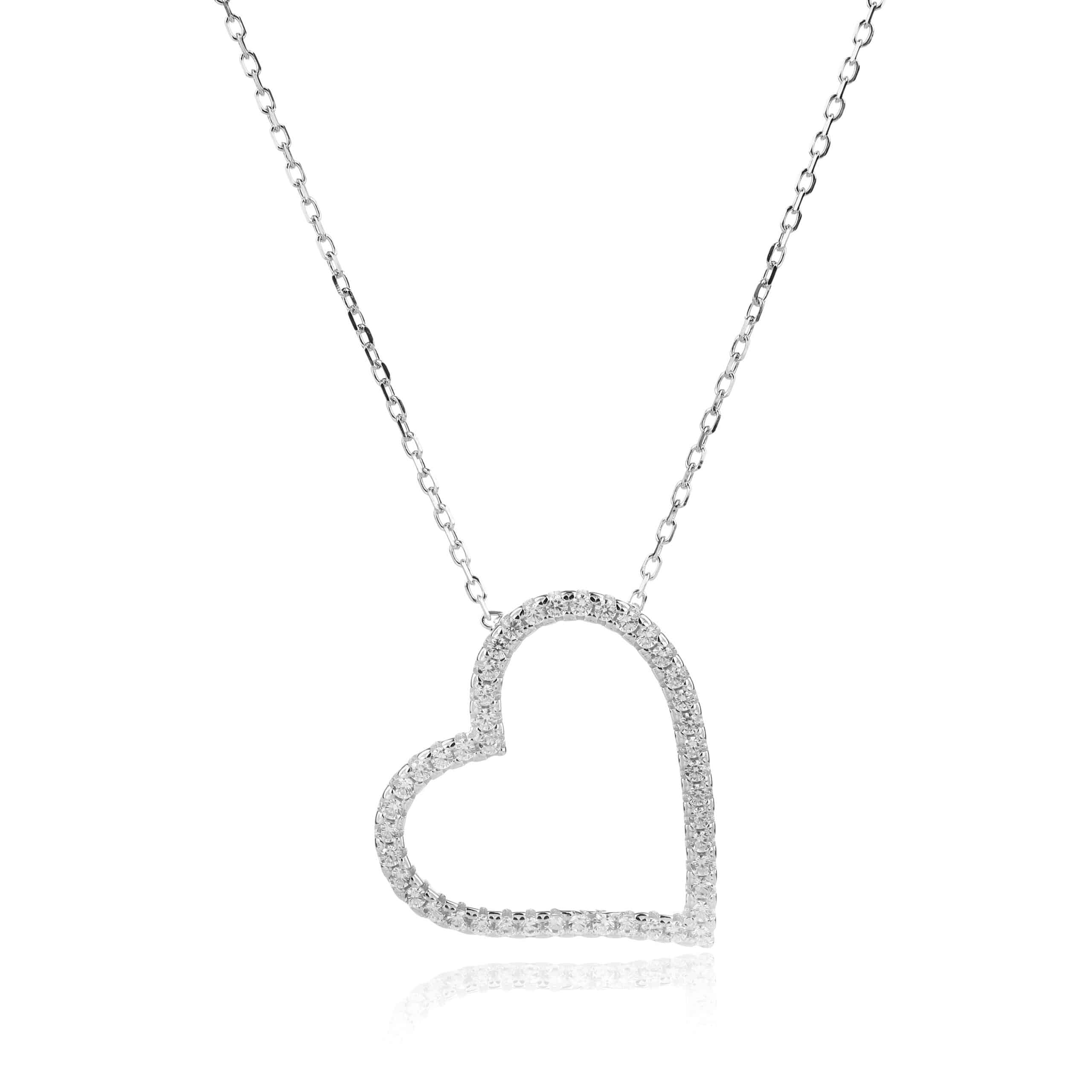 שרשרת מכסף סטרלינג 925 טהור, עם תליון לב בעיצוב חלול ומעודן. שיבוץ זרקונים עדינים מעניק לה ברק רך .