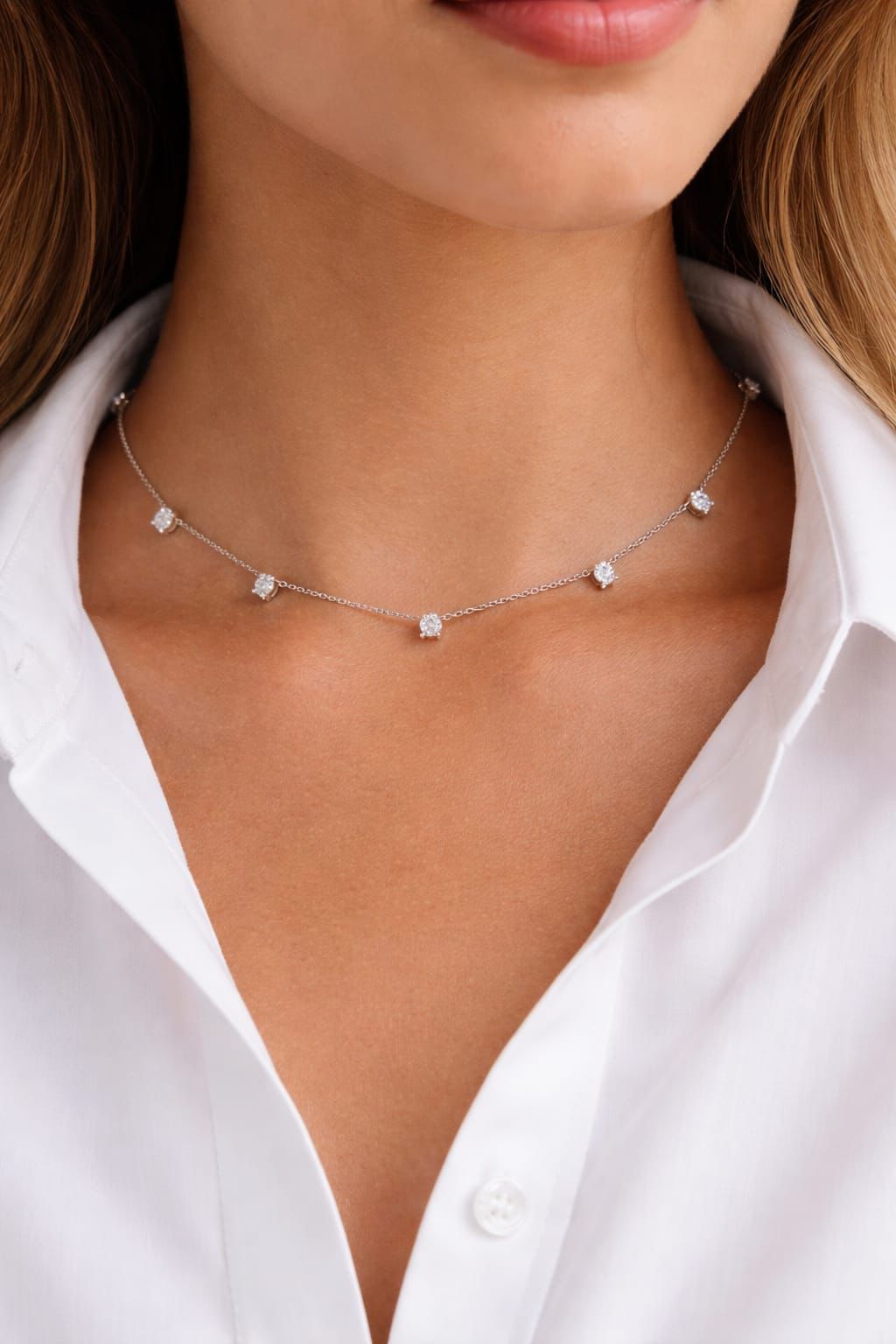 שרשרת עשויה כסף טהור 925, מעוטרת בשיבוץ זרקונים מנצנצים לכל אורכה למראה יוקרתי ומלא נוכחות. בעיצוב קלאסי ועדכני שמשתלב מושלם עם כל לוק